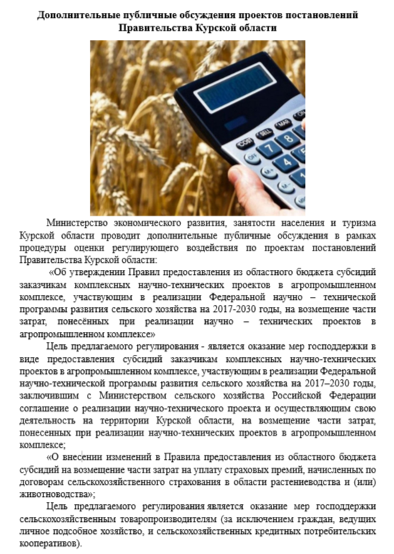 НаименованиеПроект постановления Правительства Курской области «О внесении изменений в Правила предоставления из областного бюджета субсидий на возмещение части затрат на уплату страховых премий, начисленных по договорам сельскохозяйственного страхования в области растениеводства и (или) животноводства»